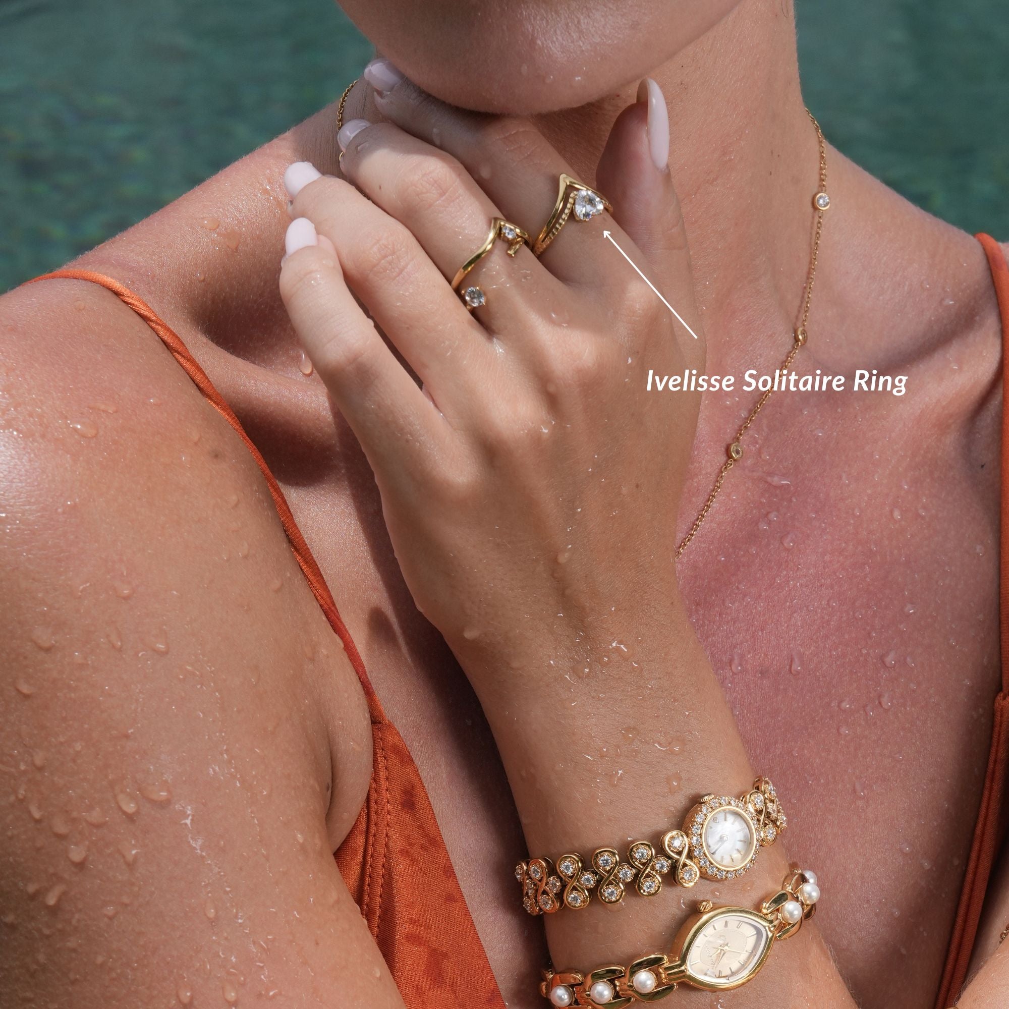 Our jewelry is made from stainless steel and finished with an 18K gold-plated coating that acts as a protective layer. Stainless steel does not rust or turn green, and the coating helps the piece stay looking new even with regular water exposure. That is why you can wear it in the shower, sea, or pool.
